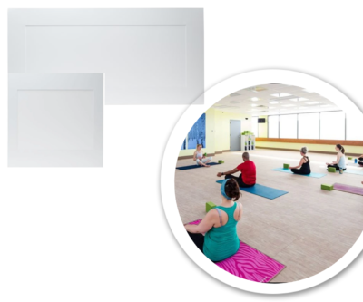 The #1 electric flush mount heater for hot yoga studios with close to 1,000 applications worldwide! This made in the USA heater reaches a surface temperature of 425F/218C and seamlessly blends into the ceiling grid with an aesthetically pleasing white or black finish.Â