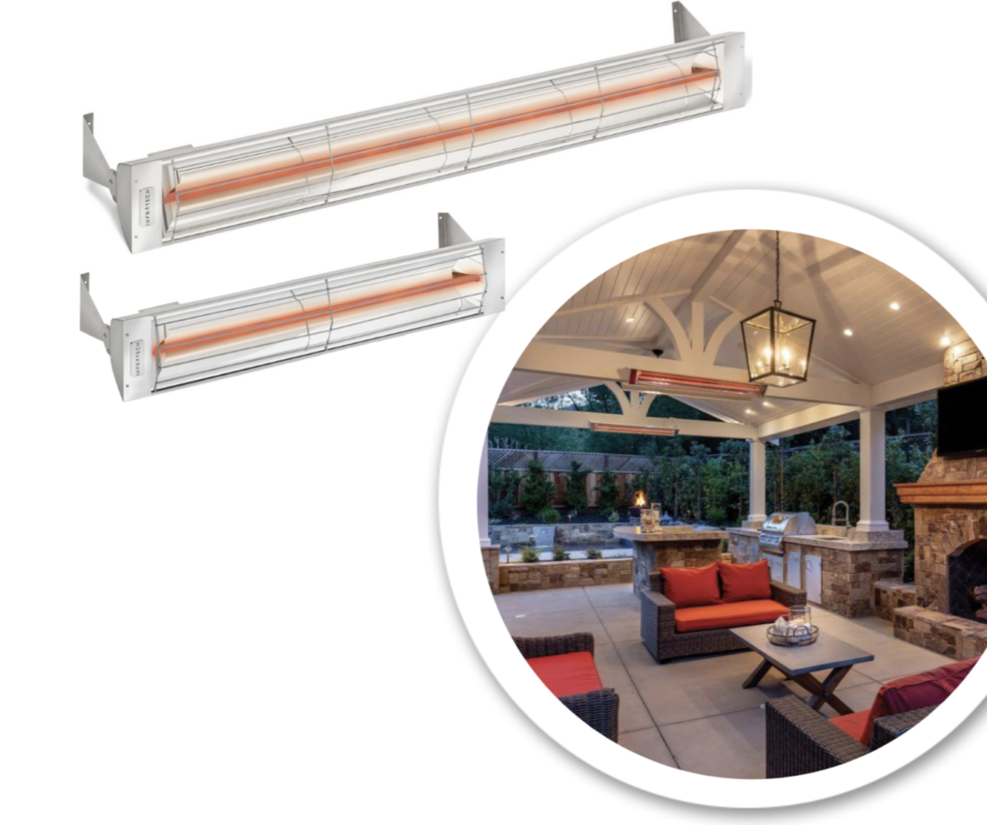 The Infratech heater is usually seen outside but is also great for indoor living spaces! These heaters have quartz bulbs that pack a punch and work great for home gyms or pottery studios and get your garage nice and toasty.